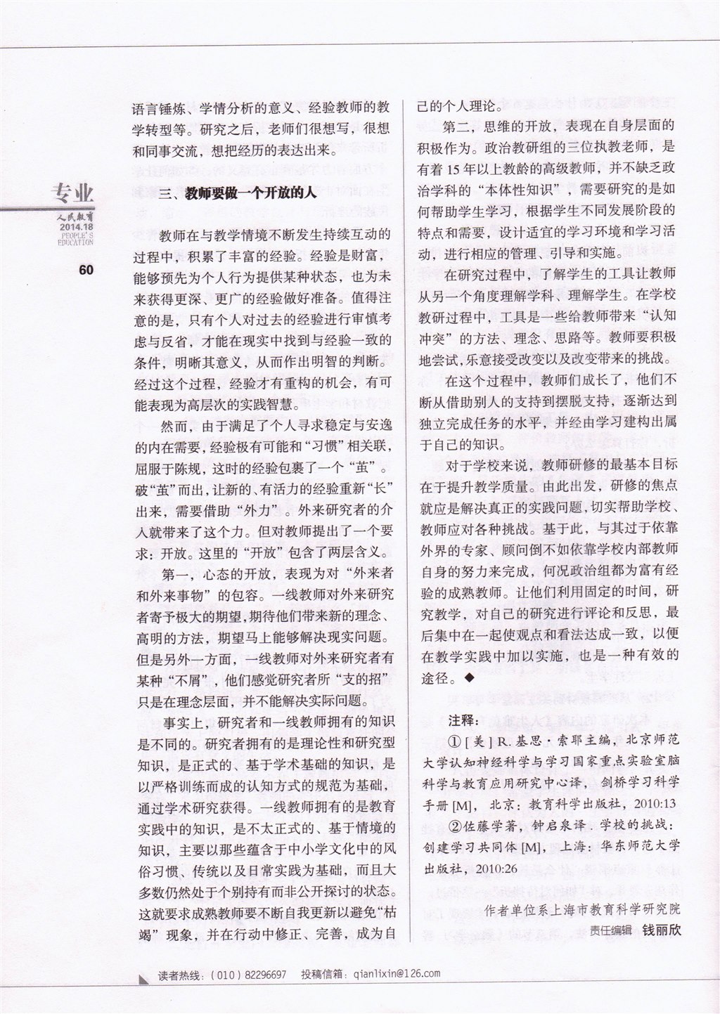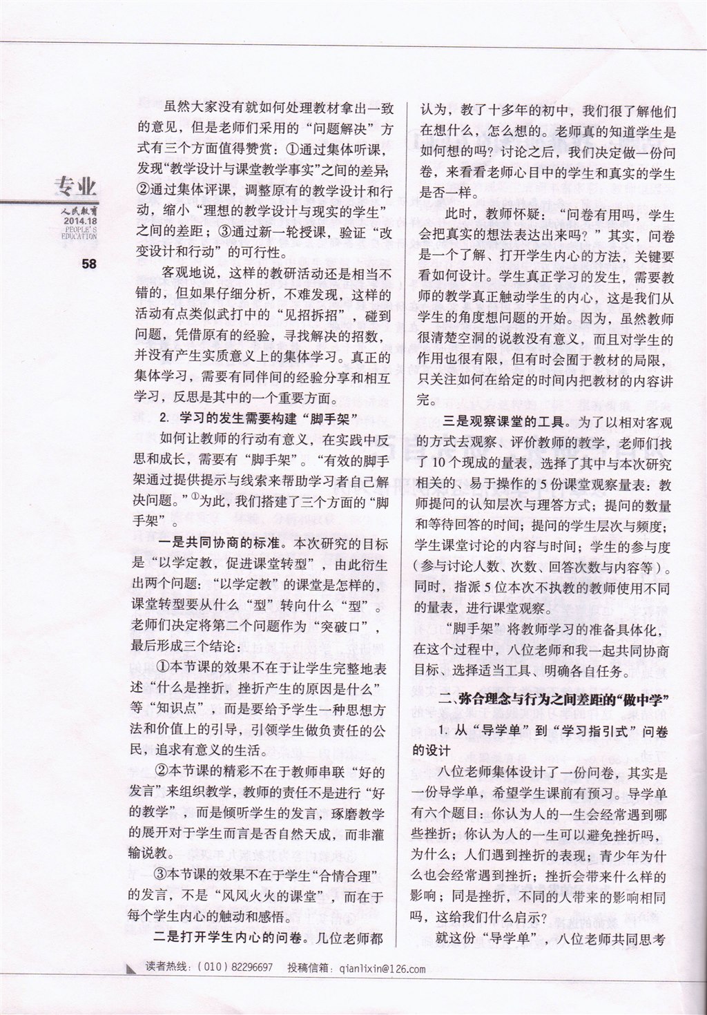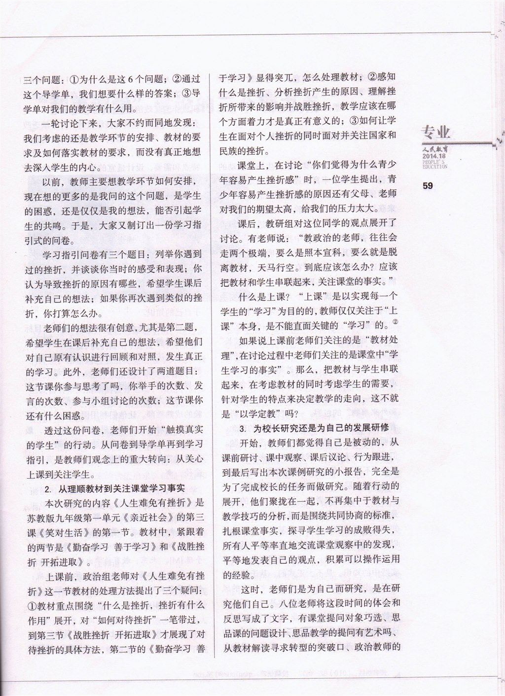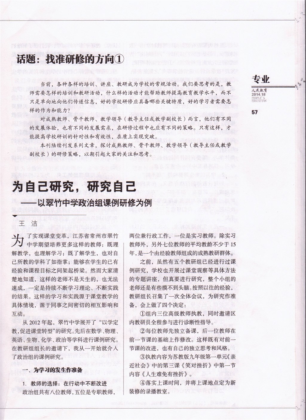 王洁博士在《人民教育》介绍我校政治组课例研究:为自己研究,研究自己